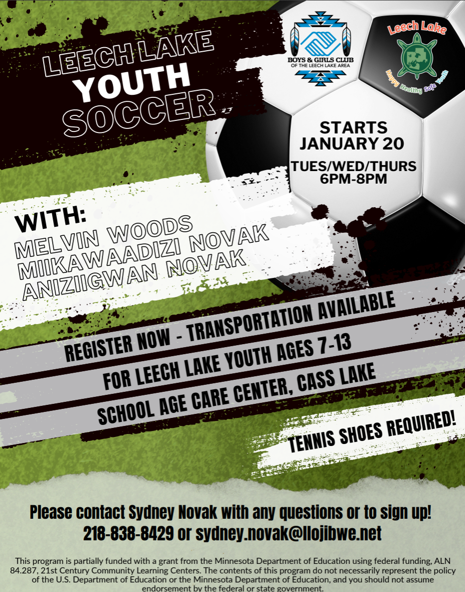 - Build partnership with local programs and practitioners including LLBO Youth Program, B&G Club of Leech Lake, Bug-O-Nay-Ge-Shig Schools, Cass Lake-Bena Schools, area clubs, and educational role-models.